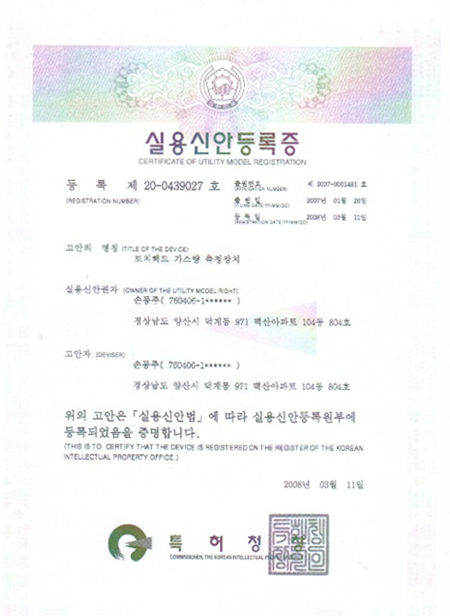Certificate of Utility Model Registration Device for measuring the amount of gas at torch head
